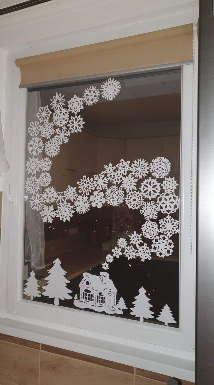 Как украсить окно снежинками из бумаги:
