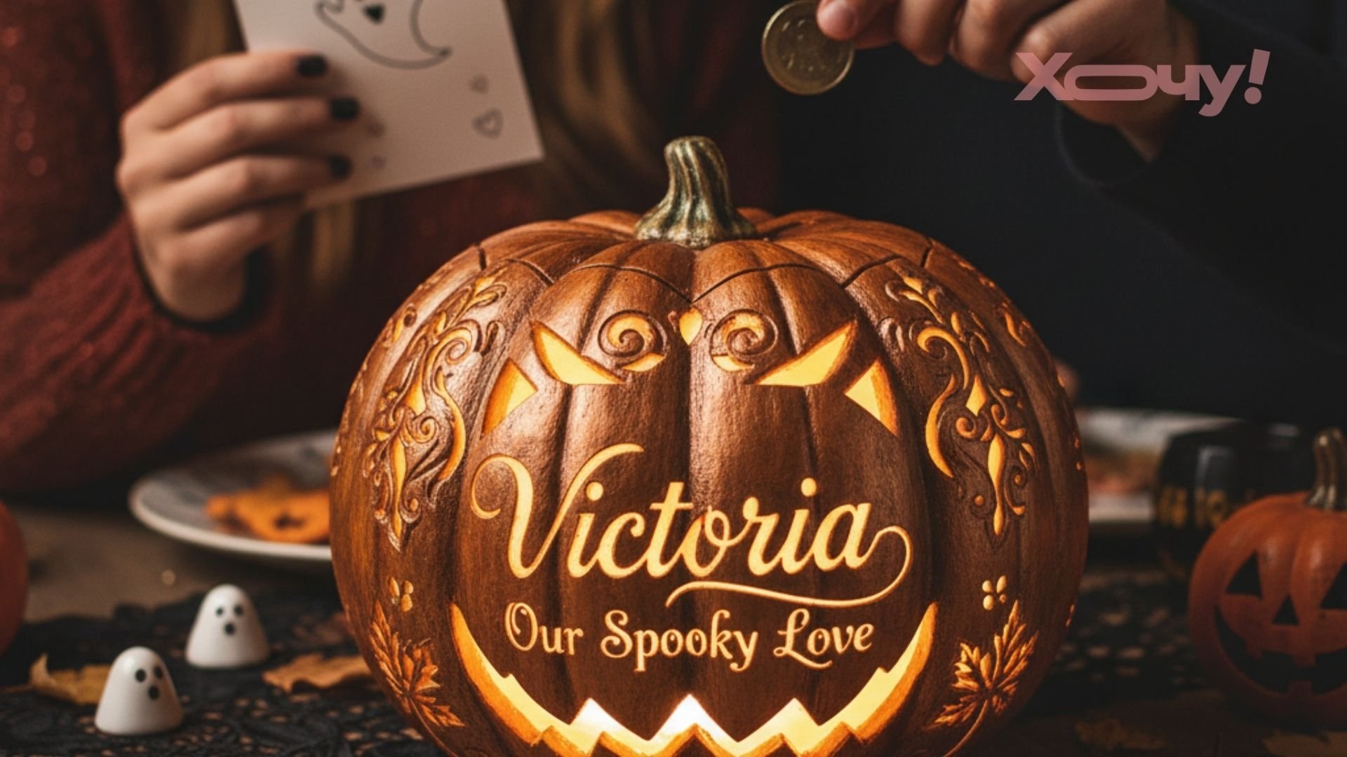 Светильник или копилка Джека с гравировкой. Не просто вырезанная тыква, а тыква с ее именем или приятной надписью.