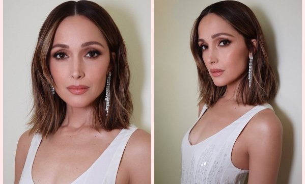Брови Роуз Бірн мають максимально натуральний вигляд. Скоріш за все, зірка делікатно заповнює прогалини олівцем, а форму фіксує прозорим гелем. А ось очі — це головний акцент всього образу. Тут важлива правильна техніка. Світлий сатиновий відтінок актриса наносить на усю повіку, теплий бежево-коричневий — у складку, а темніший коричневий — у зовнішній кутик. Замість чорної підводки вона використовує темно-коричневі стрілки й додає погляду виразності за допомогою накладних вій.