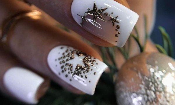 Нейл-майстри порадували любителів білих нігтів новинками дизайну. Для вас — об'ємні малюднки светра, сніжинок, слідів, рукавичок із акрилової пудри. В моді — блискучі сніжинки. Їх можна малювати вручну, а можна зробити за допомогою стемпінгу.