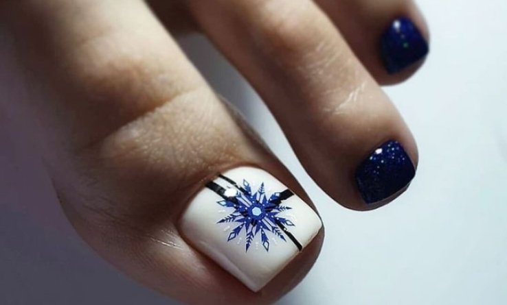 Нейл-майстри показали модні варіанти педикюру на Новий рік. У тренді — сніжинки, ялинки, новорічні кульки та блискітки. Найпопулярніші кольори — смарагдовий, темний зелений, золотий.
