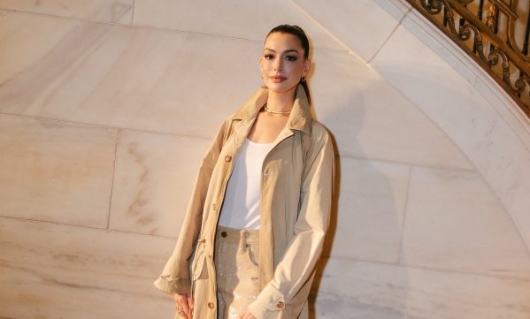 Красуня мала чудовий вигляд у білій майці та бежевих штанах з дірками, які прикрашали лелітки. Доповнили лук бежевий тренч, взуття на підборах у золотому відтінку та золоті прикраси. Своє волосся Гетевей зібрала у високий хвіст та зробила макіяж з акцентом на очах.