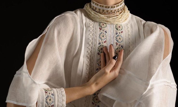 Вишиванка в старовинному стилі — чудова інвестиція в ваш гардероб. Вироби Khrystyna Rachytska носить сама Катя Осадча, тож можете зробити собі гарний подарунок до свята. Ціна — від 1000 доларів.