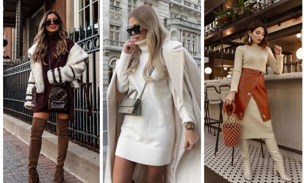• як демісезонний варіант — поєднання сукні-водолазки з щільними колготками, черевиками або ботильйонами виглядає дуже ефектно.