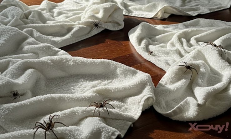 Павуки починають будувати павутину навколо вологих рушників і чекають на здобич, яка прийде у пошуках води. А у холодну пору павуки можуть ховатися навіть у сухих рушниках.