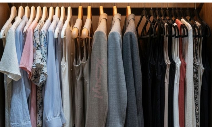 Щоб гардероб мав охайний вигляд обирайте вішаки одного кольору, бренду та розміру. Це створює гармонію та прибирає візуальний шум.