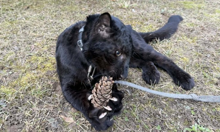 Коли ми закінчили всі щеплення, почали виводити її гуляти. Спочатку осінь, потім сніг – і от снігові кучугури їй зайшли найбільше. Вона просто зникала в них, носилась, за секунду вже на дереві, потім знову вниз. Тягала шворку, стрибала на плечі – як домашнє кошеня, тільки значно сильніше. Через кілька місяців її вже ніхто не міг наздогнати. А під кінець зими вона обмилувала найвищі гілки й могла сидіти там годинами. І ти в якийсь момент розумієш – це вже справжній хижак. По очах видно.