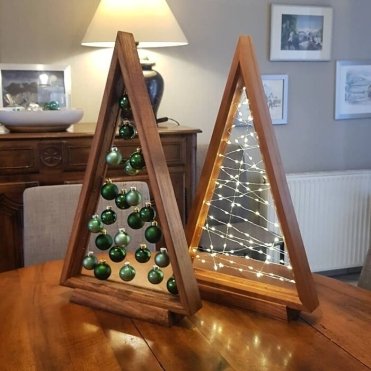 Основа ялинки виготовлена з дощечок. Таку можна придбати готову, або ж зробити самостійно: просто придбайте підрамники у будь-якому художньому магазині, або ж тонкі готові дощечки у будівельному маркеті, та з'єднайте їх у формі ялинки за допомогою цвяхів.