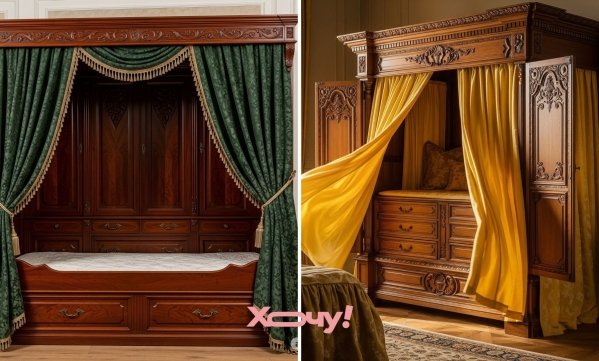 Це спальне місце, замкнене в меблях. Колись вони мали вигляд шафи з чотирма ніжками та дверима на петлях або шторою. Варіантів було безліч: складне різблення, дорогі тканини для шторки, шухляди для додаткового зберігання.