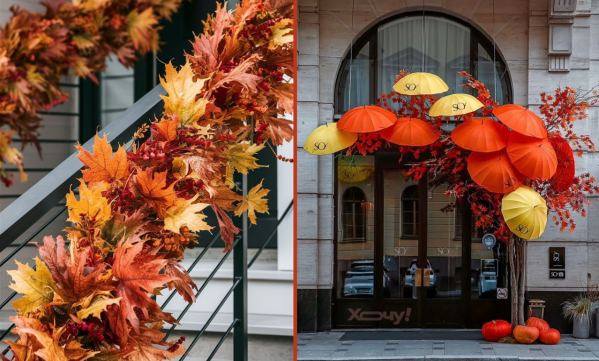Прикрашаємо вхід до салону, кафе чи студії — трендові ідеї оздоблення в осінньому стилі