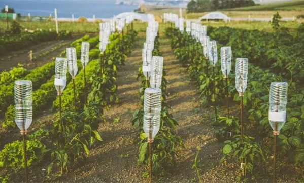 З пляшок можна зробити крапельний полив. Найпростіший спосіб - наповніть пляшки водою, закрутіть кришками та зробіть по кілька дірочок у кришечці. Після цього залишиться лише вкопати пляшку в землю шийкою вниз. Вода буде поступово просочуватись у ґрунт. Можна зробити це різними способами - наприклад, пляшку можна не закопувати, а розмістити зверху на палиці чи закріпити на стяжки, якщо біля рослин уже є опора.