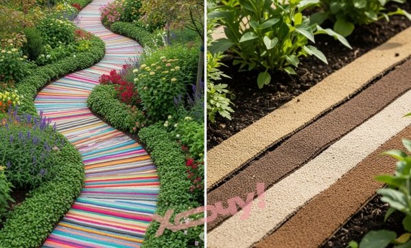 Розрізати на потрібні за розміром смужки і розкладіть на стежках. Це забезпечить чистоту ніг при ходьбі, естетично привабливо і не дасть проростати бур’янам.