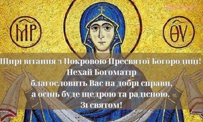 Вітаю зі святом нашої Небесної Захисниці! Нехай Покров Пресвятої Богородиці завжди буде над Вами, даруючи незламну силу духу та віру у світле майбутнє.