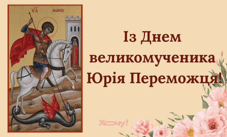 Святий Юрій відомий своїми чудесами в багатьох країнах світу. Цього воїна зображають на іконах та картинах, як того, хто сміливо переміг страшного змія. За віру в Христа його віддали на тортури, але він їх не злякався і був відданим своїй вірі до останнього подиху. Для вас — душевні вітання з нагоди цієї дати.