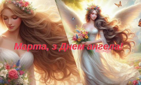 Люба Марто, вітаю тебе з Днем ангела! Бажаю нескінченної краси, молодості і жіночності, радості і натхнення, здоров’я і заможності, достатку, забезпеченості і достатку. Нехай твої мрії радують своїм звершенням. Любові тобі і добробуту Марточка, я тебе від щирого серця вітаю і хочу побажати яскравої реальності з великими успіхами і блискучими перспективами, різнокольорових сновидінь з добрими мріями та солодкими бажаннями, бажаю вічного світла на життєвому шляху, щирої радості та вірною удачі.!
