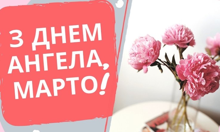 Марто, з Днем ангела! Бажаю весни в душі, зажди позитивних емоцій, неймовірних вражень та любові. Нехай тебе оточує тільки тепло і турбота! Нових перемог, відкриттів й успіхів в усіх справах!