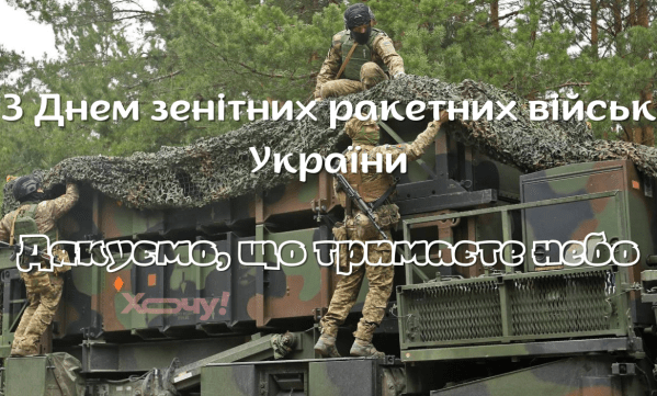Щира подяка військовослужбовцям зенітних ракетних військ Повітряних Сил України ‒ захисникам українського неба! У День Вашого професійного свята від щирого серця бажаємо Вам міцного здоров’я, витримки, незламності, непохитної віри в Україну та її прийдешню перемогу!