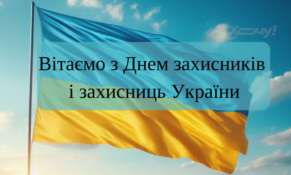 З Днем захисника України! Щиро дякуємо за мужність, самовідданість і відвагу. Ви — ті, на кого рівняються мільйони, ті, хто боронить наш мир і спокій. Бажаємо Вам міцного здоров'я, сімейного тепла і непохитної віри у краще майбутнє України!