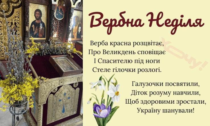 Листівки з Вербною Неділею — українською