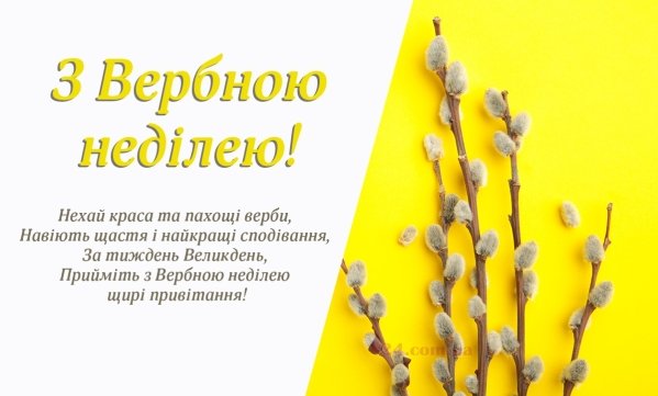 Сьогодні я вітаю тебе з Вербною неділею! Нехай з гілочкою верби твій будинок наповниться світлим щастям, новими надіями, теплою атмосферою любові та взаєморозуміння! Нехай мир та злагода завжди панують у твоєму домі!