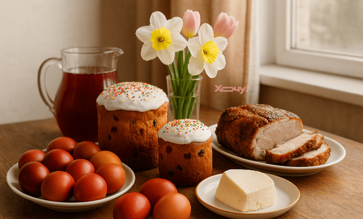 Паска — пишний, ароматний хліб, який випікають у кожному домі перед святом. Вона є символом Божого благословення та нагадуванням про небесну радість. Часто її прикрашають глазур’ю, цукровими квітами або навіть начиняють шоколадом, кремом чи фісташковою пастою!