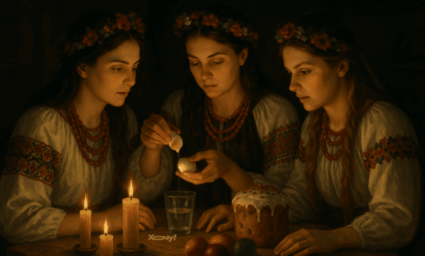 Здавна Пасха тісно переплетена з різноманітними язичницькими обрядами. Наші предки частенько після Великоднього застілля сідали разом ворожити, адже вірили, що це дуже потужний день, коли завіса між духовним та реальним світом падає, й можна дізнатись своє майбутнє.