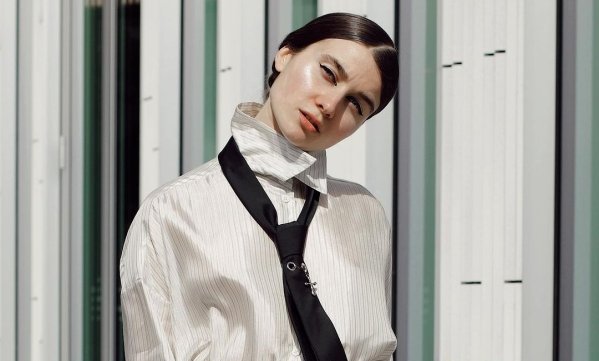 Артистка доповнила свій наряд чорною краваткою, білими кросівками та масивним металевим браслетом. Виразні стрілочки підкреслили очі зірки, а волосся виконавиця заплела у нестандартну косу.