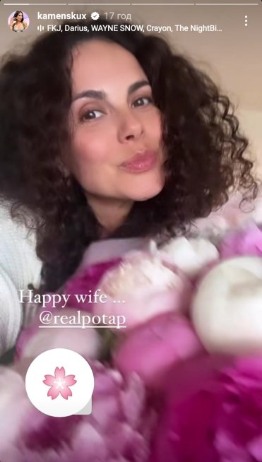 У себе в сторіс вона відмітила Потапа та написала англійською “Happy wife” (щаслива дружина). Каменських справді виглядала доволі радісною та кокетливо посміхалася на камеру.