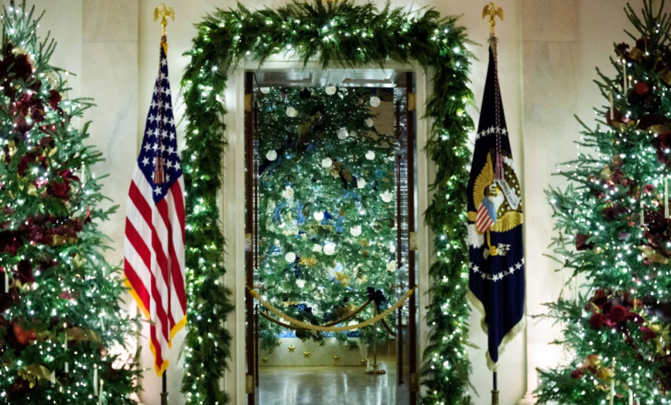 Центральна ялинка Білого дому сягає понад 5 метрів. Вона оздоблена великими білими та золотими кульками – кожна відповідає окремому штату. Це одна з найважливіших частин традиційного різдвяного маршруту у резиденції.