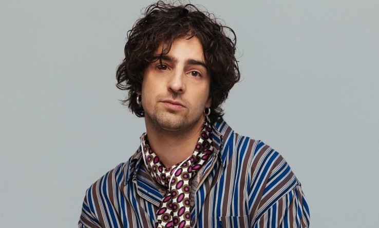 Дантес зазнімкований з тканинною маскою на обличчі, лежачи у темно-сірому худі на дивані. Його волосся зібране назад за допомогою чорної пов’язки.