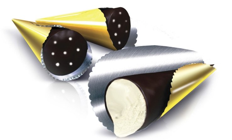 Це дуже дивний випадок, адже спочатку винайшли упаковку для цукерки, а вже потім розробили під неї солодощі. В Одесі кондитерській фабриці винайшли механізм, який формує ідеальний конус з кружечка фольги. І вже під це упакування розробили принципово нову цукерку.