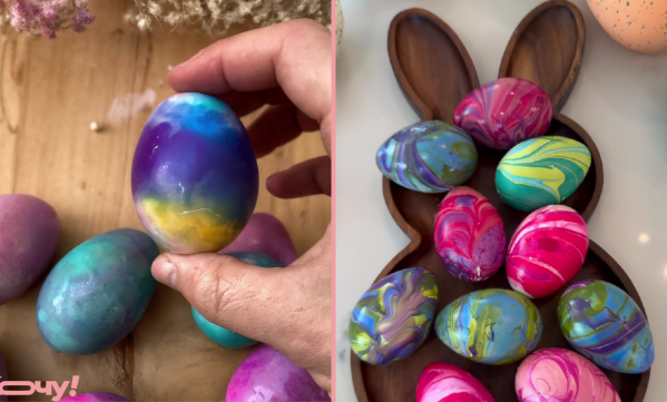 Є чимало способів оригінально пофарбувати яйця на Великдень. Ми розповідали, як зробити “леопардові крашанки”. Тепер розповімо, як прикрасити їх кольоровими розводами.