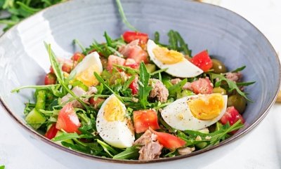 Ми розповідали, як приготувати оригінальний салат з сухариками. Тепер ділимось рецептом особливо смачного салату - з яйцями, овочами та копченою рибою.