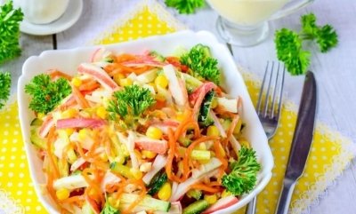 Ми розповідали, як приготувати дуже смачну новорічну закуску з ікрою. Тепер ділимось рецептом дуже смачного святкового салату з крабовими паличками.