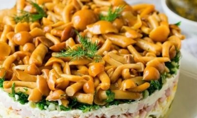 Ми розповідали, як приготувати чудову закуску з лососем. Тепер ділимось рецептом дуже смачного та ситного салату з маринованими грибами.