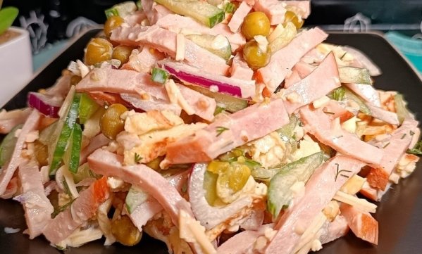 Дуже смачний, ще й готується швидко. Компоненти добре поєднуються, а заправка просто ідеально їх доповнює. Рецептом поділились на порталі “Господинька”.