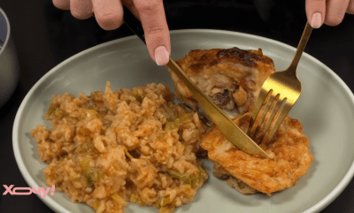Це запіканка з викладеними зверху курячими стегнами. Рецептом поділились у кулінарному блозі nataliia_zhuk_cooking.