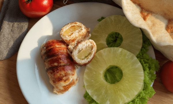 Прості страви можуть бути фантастично смачними. Ми розповідали, як приготувати кабачки по-турецьки. Тепер поділимось рецептом курячих рулетиків з ананасом у беконі.