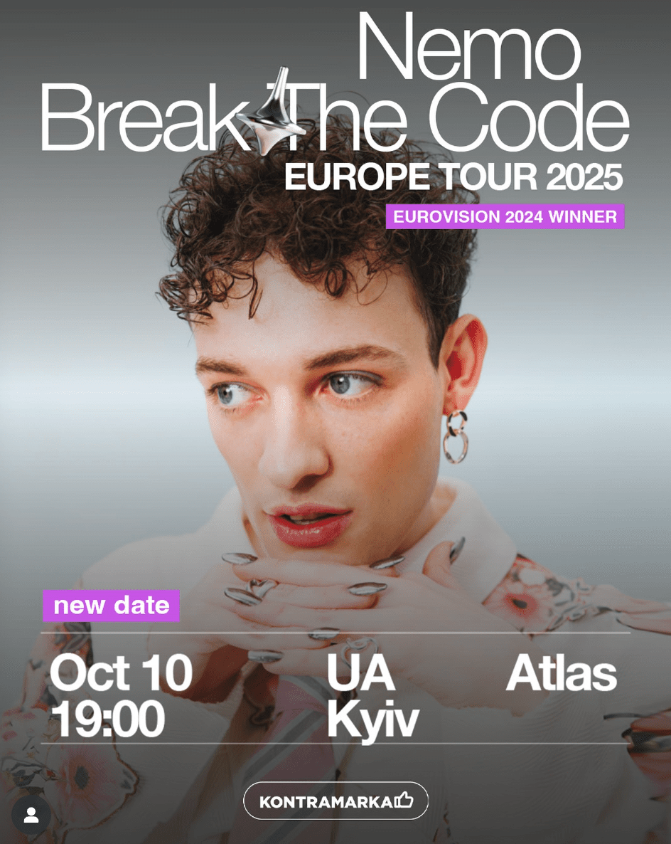 10 жовтня клуб Atlas зустрічатиме швейцарський феномен — Nemo, тріумфатора Євробачення-2024. Артист презентує дебютний альбом Arthouse, тож саме київська публіка першою почує нові треки наживо — серед них легендарний The Code.