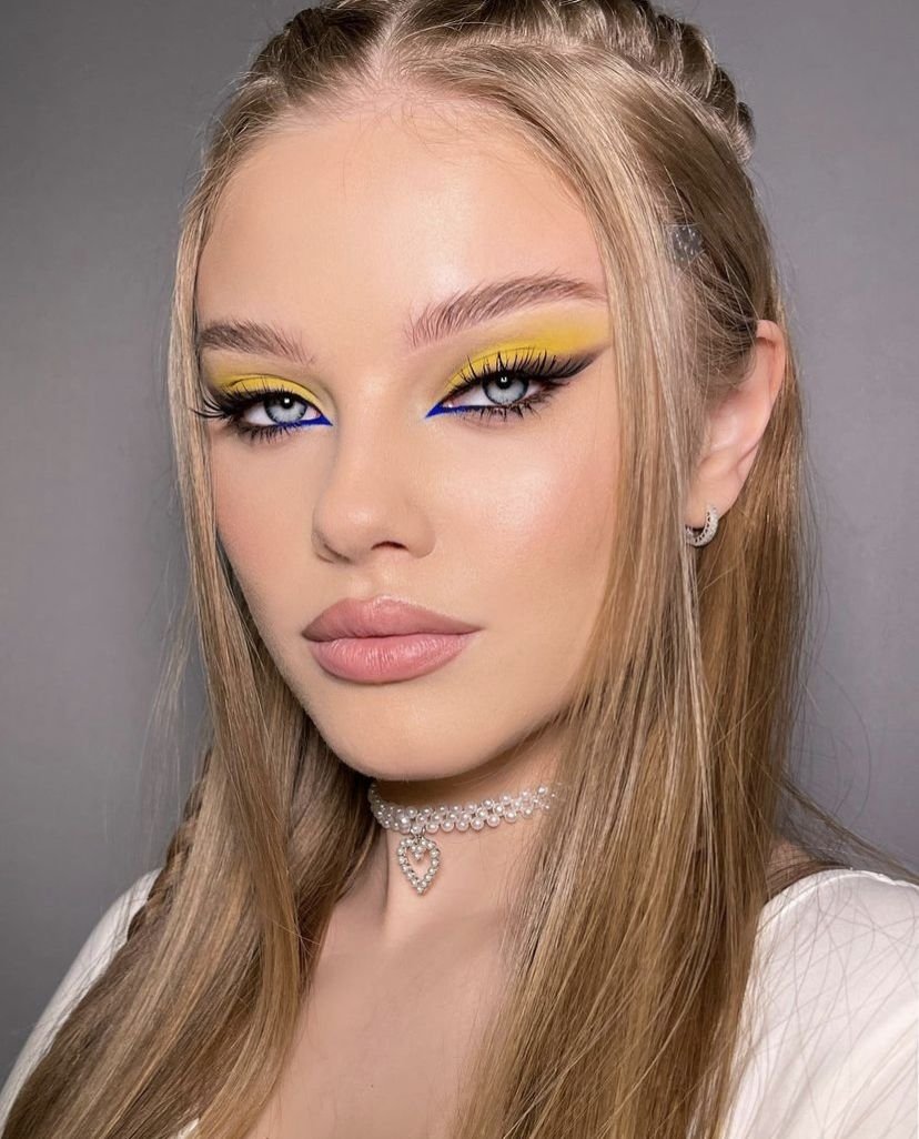 Синьо-жовтий макіяж — це новий тренд 2025 року. Фото: соцмережі