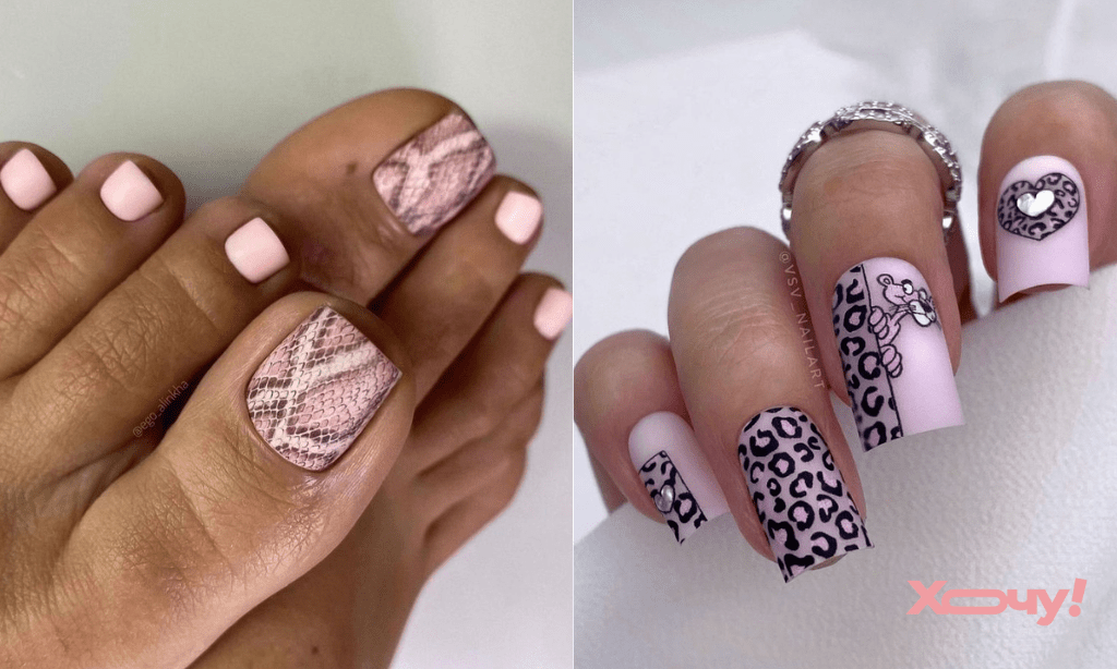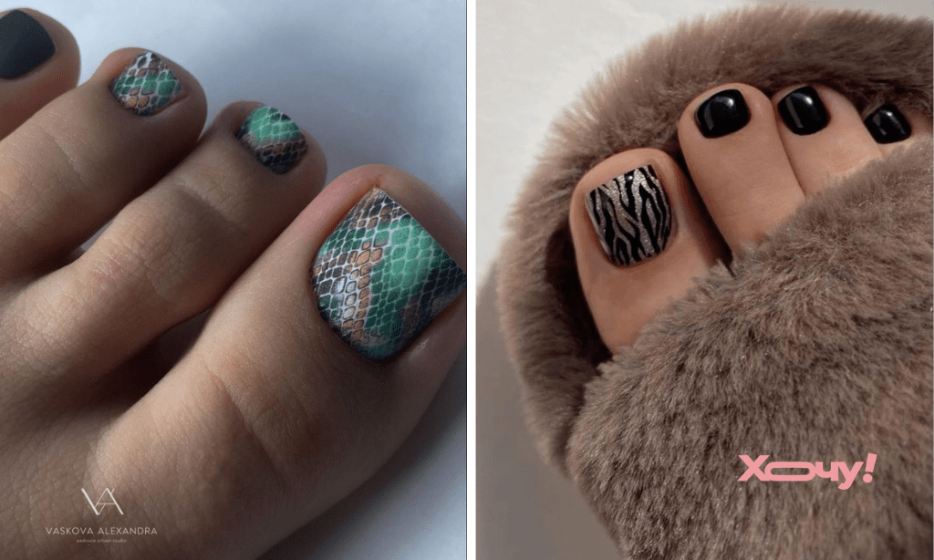 Весняне потепління — гарний привід дістати босоніжки, а отже — зробити модний педикюр. Якщо ви любите, щоб нігті пасували до будь-якого образу, віку та події, обирайте анімалістичний принт. У моді — різноколірні зображення. Обирайте імітацію шкіри зебри, леопарда, змії, або міксуйте їх між собою.