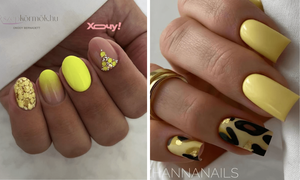 У моді — манікюр в жовтих тонах із декором. Доречно додавати блискітки будь-якого розміру та відтінку, стрази, квіти і надписи. Можна робити жовтий френч, жовтий фон із кінчиками іншого кольору, а ще — градієнт і омбре в цих кольорах.