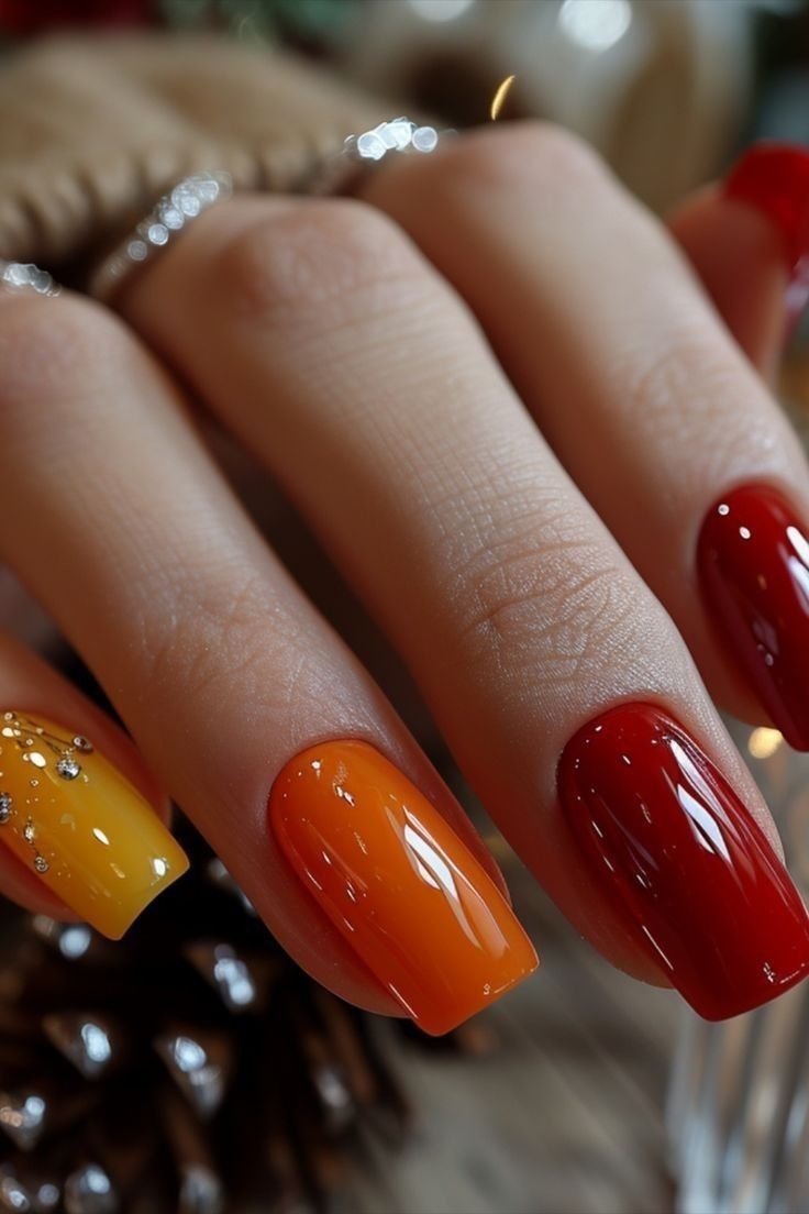 Наймодніші відтінки манікюру на осінь 2025 року — помаранчеві, золотисті, молочні й темні коричневі. Їх можна поєднувати разом, можна — окремо, додаючи блискітки або стрази. Доречною залишається золота пастель.
