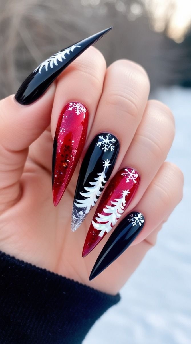 Якщо ви любите все й одразу і не можете обрати конкретний манікюр, зробіть на кожному пальчику різні дизайни. Наприклад, на одній руці легко поєднати блискітки або шимер, новорічний малюнок у вигляді цукерки чи печивка, гілки ялинки чи сніжинок. Один нігтик можна лишити однотонним, а на інших зміксувати ефект светра за допомогою акрилової пудри, додати ліплення чи стрази.