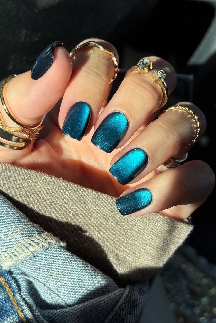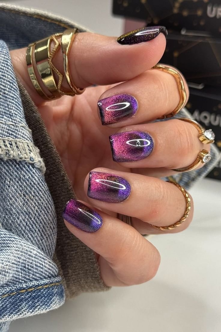Манікюр "котяче око" у 2026 році трансформується у надсучасний тренд із ефектом глибини, що нагадує космічні туманності або коштовне каміння. На піку популярності будуть насичені смарагдові, глибокі сині та містичні фіолетові відтінки, які створюють розкішний об’єм на нігтях будь-якої довжини. Майстри радять використовувати оновлену техніку з двома магнітами для отримання кришталевого відблиску, що робить манікюр схожим на рідке скло.