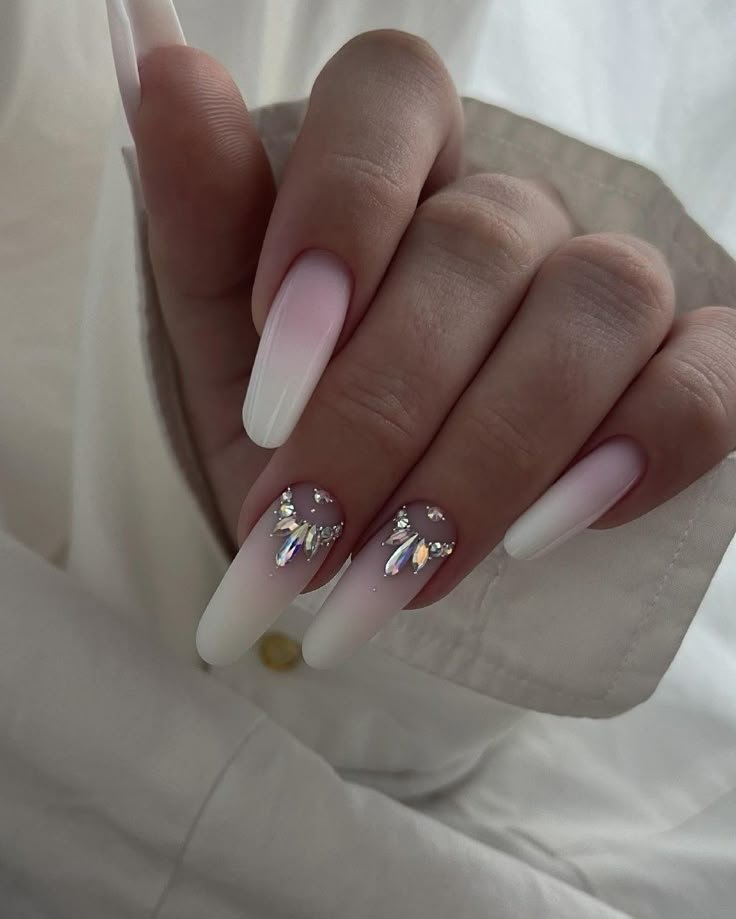 У 2026 році класичне поєднання френча та нюду зі стразами набуває нового ефекту, який можна назвати “делікатне сяйво”. Тут камінці Сваровських використовується як мінімалістичний ювелірний акцент. Замість звичних прозорих кристалів у тренді будуть кольорові мікрострази в тон покриттю. Нейл-майстри пропонують розташовувати блискучі елементи не на кожному пальці, а лише на одному-двох, підкреслюючи лінію кутикули або край вільного кінчика.