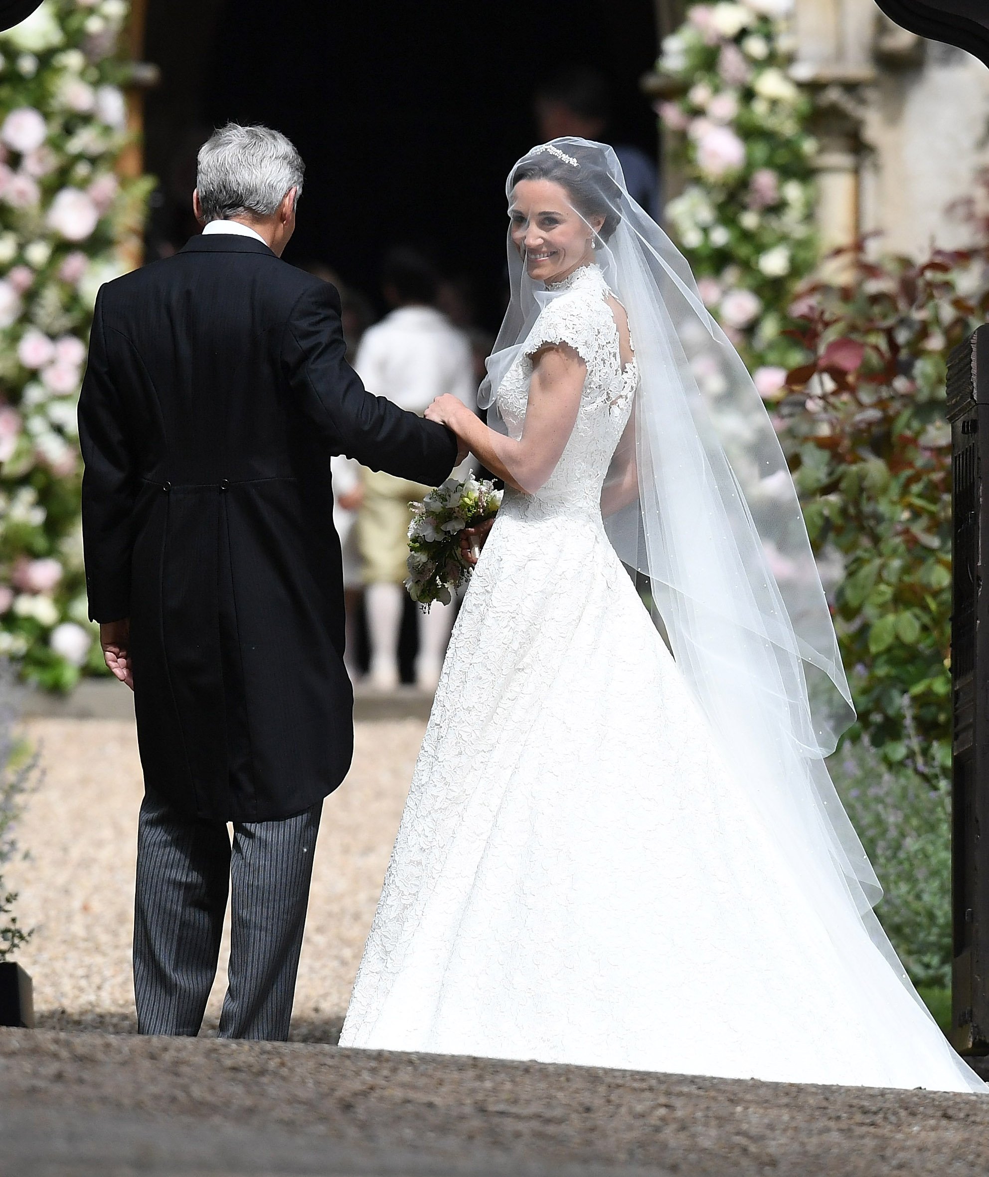 Під час підготовки до весілля Піппа переживала чимало стресу і навіть помітно схудла, тож плаття довелося перешивати п’ять разів, аби воно ідеально сідало на фігуру. Завершенням елегантного образу стала вишукана фата, спеціально створена для Піппи.