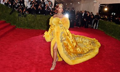 Одним із найрезонансніших образів в житті Ріанни став її вихід на бал Інституту костюма в Нью-Йорку у 2015 році. Тоді популярна співачка позувала на червоному хіднику в жовтому, мов сонце, вбранні-халаті з величезним шлейфом, обрамленим хутром та розкішною квітковою вишивкою. У Китаї цей відтінок символізує імператорську велич.