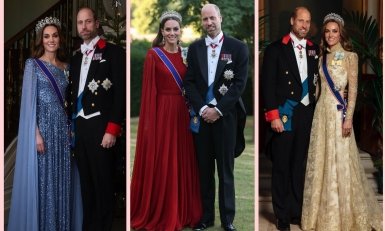 Ще один образ Кейт Міддлтон в червоному кольорі змусив світ затамувати подих. В липні 2025 року принц Вільям та його дружина влаштувала урочисту вечерю з президентом та першою леді Німеччини. На події принцеса з’явилась в довгій червоній сукні з кейпом та доповнила вбрання розкішною тіарою, яку носила її покійна свекруха — принцеса Діана.
