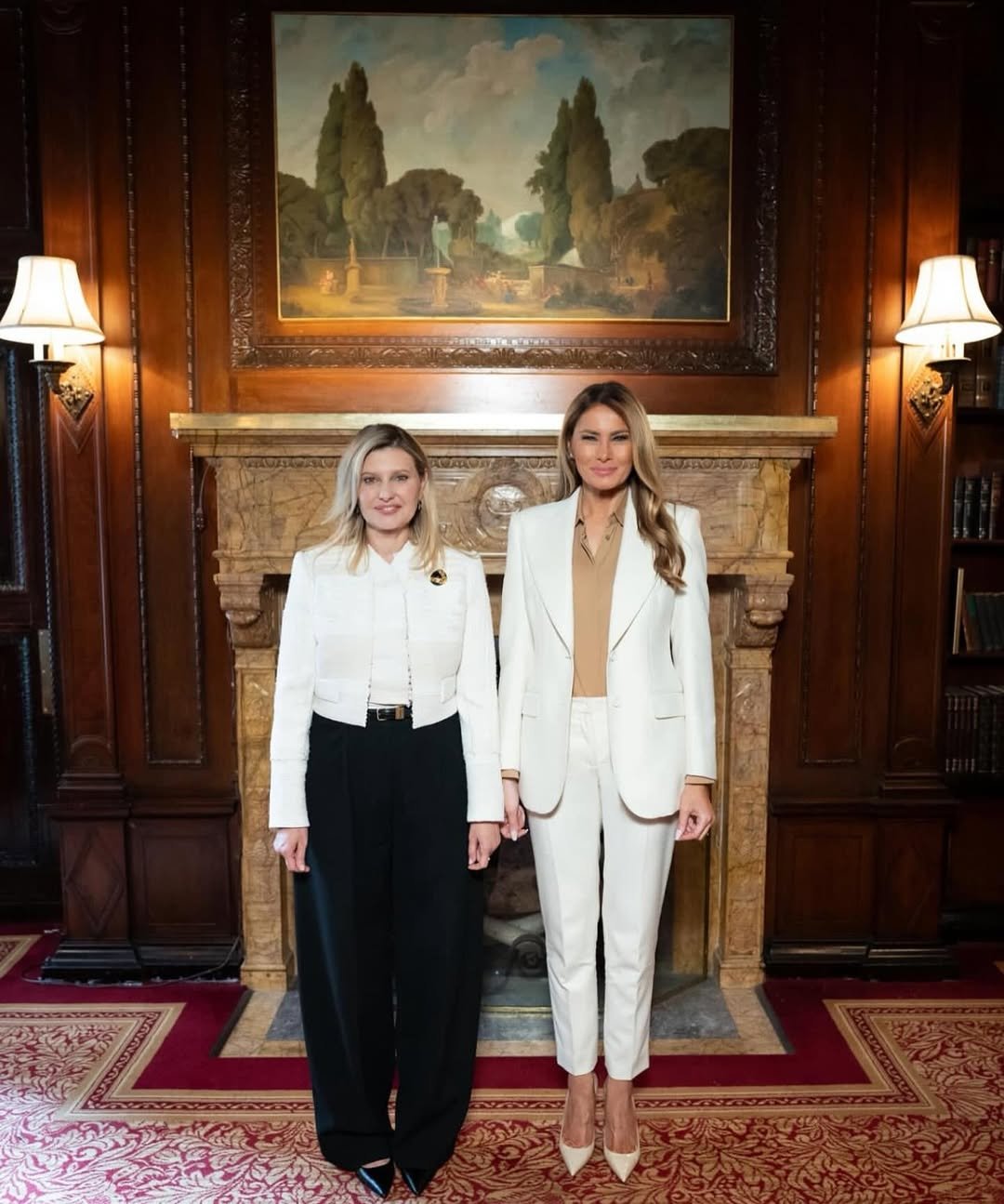 У США Олена Зеленська зустрілася з Меланією Трамп. Для цього дійства вона вирішила зробити ставку на класику — чорно-білий образ, який виглядав просто та водночас дуже стильно.